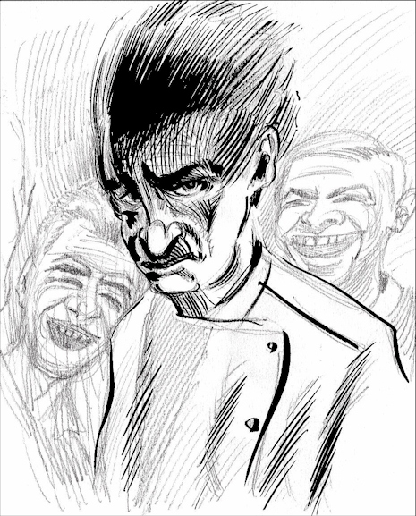 Un violoniste se produisit avant moi. Il fut bon, dans le stupide concerto de Mendelsohn. Il fut précédé d'une introduction ronflante, dont l'énumération du curriculum traîna en longueur. Déjà acquainté à certains membres du groupe, il venait ici glâner une nomination assurée. L'hôtesse ne laissa pas de doute: "C'est un ami que nous connaissons fort bien, presque déjà un membre honoraire du club." Ce fut une simple formalité, sa performance fut appréciée. L'hôtesse l'accompagna au clavecin (qu'elle avait joli) d'abord puis au piano, ils débutèrent par une sonate de Haendel, puis on déplaça péniblement fauteuils et grabataires pour se centrer sur le piano. Ils interprétèrent le premier mouvement du concerto pour violon de Mendelsohn, furent abondamment applaudis. L'homme filma sa performance, au moyen d'une caméra vidéo montée sur un trépied. Il omit la cravate. Il porta les cheveux roux et anonymes. Il eut une faible barbe. Il porta de lunettes. Il joua avec la partition. Il fut mince, mais au physique agaçant, subtilement disgrâcieux. Sa sonorité dérailla parfois, aigre, dans les passages lents et piano. Mais il sut en foutre plein la vue, flamboyant dans la cadence du mouvement.
