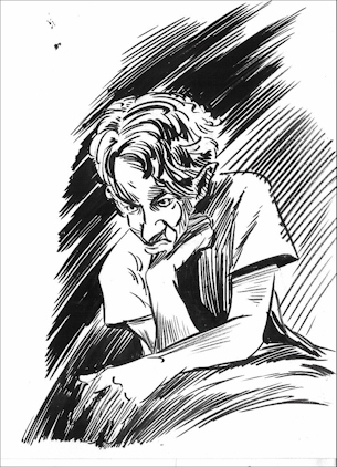 La pauvre femme était évidemment malade. Je compris soudain en la voyant dans son milieu qu'elle avait dû quelque peu perdre pied. Finalement sa recommendation me faisait froid dans le dos. On devait la considérer comme une aimable folle. J'eus pitié d'elle encore, à la voir se tortiller, les mains crispées, les doigts figés dans un angle inconfortable, comme les branches d'un arbre. Sa peau semblait tendue à l'extrème, menaçant de se rompre sur l'angle des os, sous la force de cette crispation continue.